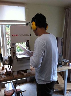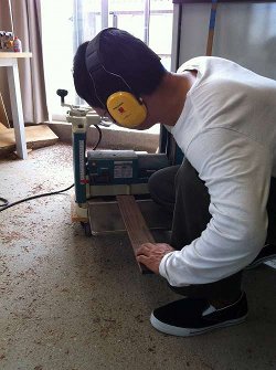 自動がんなで厚みを整えているところ。