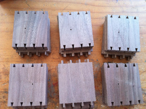 日記 箱 昨日、今日と箱を作っていました。今回使った材料はブラックウォルナット。 まず、荒材をバンドソーや自動がんなで製材するところから始めます。 そして、糸のこで丁度よい大きさにカットします。 箱の接合にはアリ継ぎと呼ばれる手法を使っています。 糸のこでカットしました。 組み立てたところ。 ぴったり合わさって、めでたし、めでたし。 2011-09-12 | Posted in 日記 | < フラジャイル室内楽団のDM、送ります。 木財 >